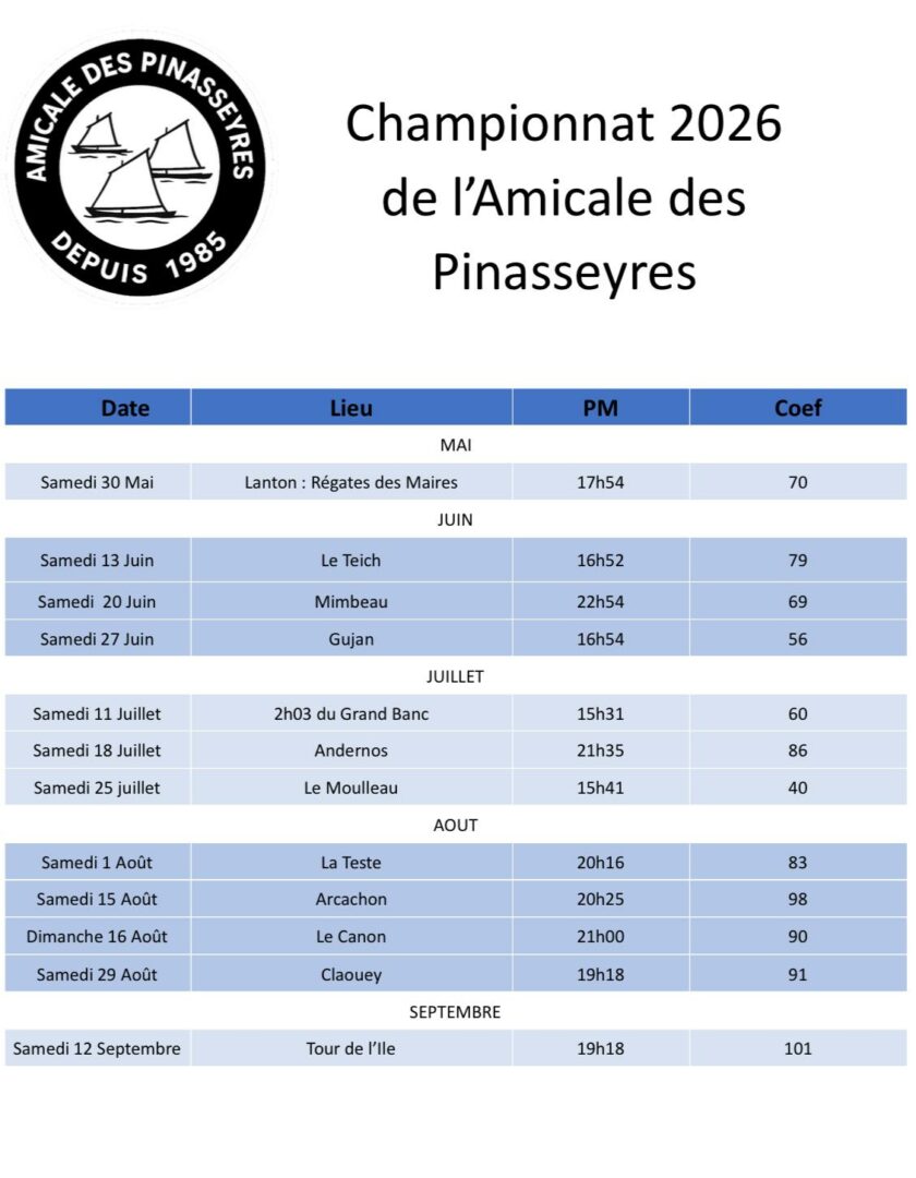 Calendrier des Régates 2026